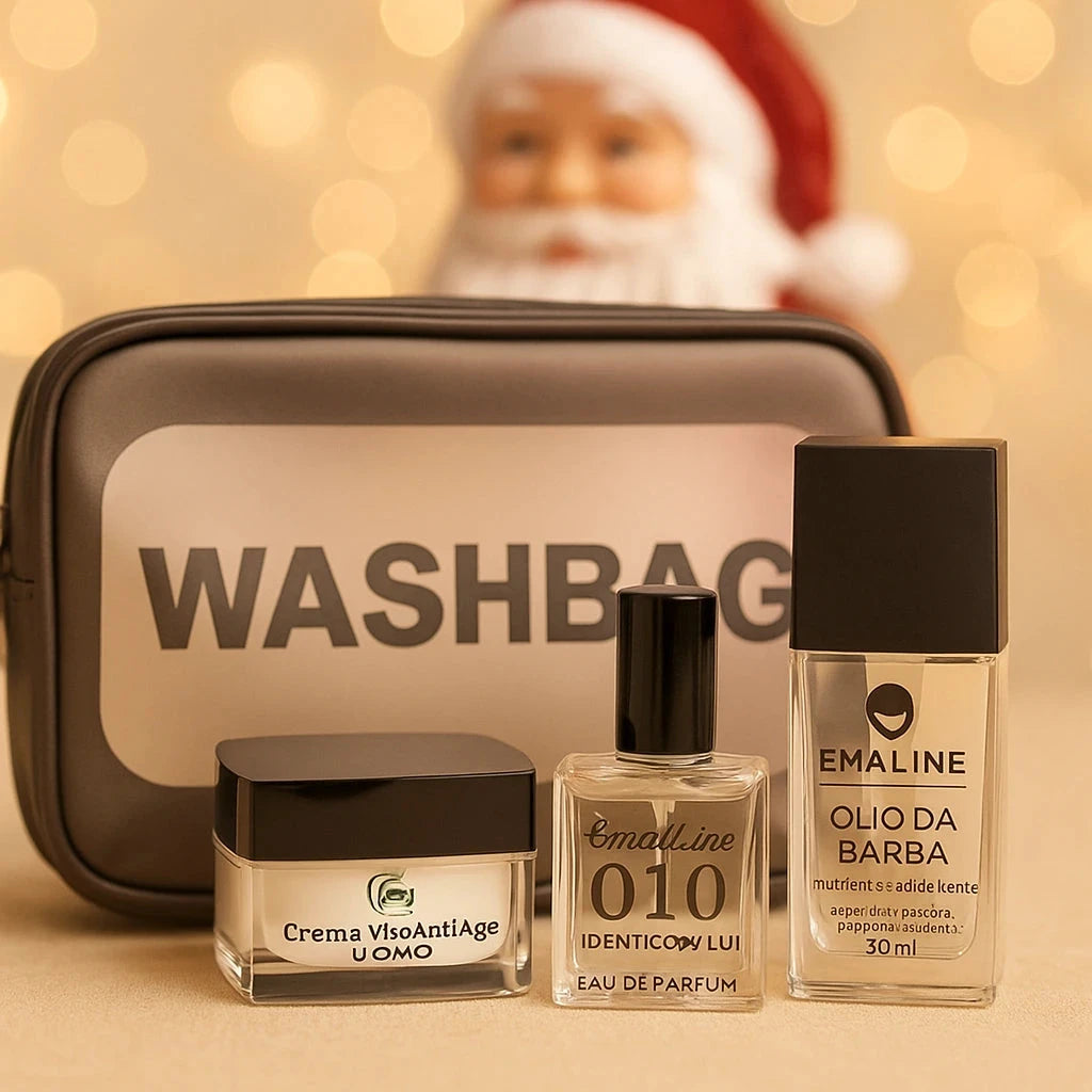 Un cofanetto raffinato, vestito di nero e racchiuso nella Washbag EmalLine, pensato per l’uomo che ama la cura personale e i dettagli di stile.