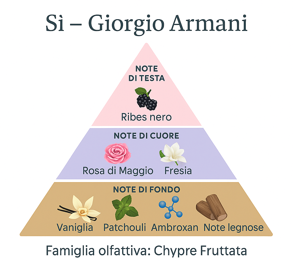 Ispirato alla famiglia olfattiva di Sì di Giorgio Armani.