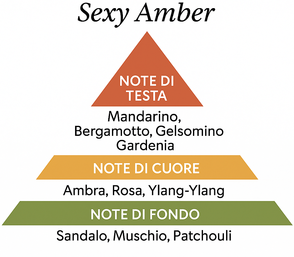 (Per questo originale la piramide è volutamente essenziale: “amber + white flowers + sandalwood”)